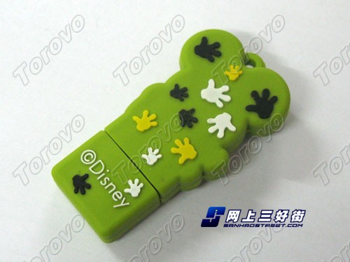除了整體外形采用獨(dú)特的卡通設(shè)計(jì)外,這款U盤的材質(zhì)運(yùn)用也雨中不同,使用了不常見的硅膠作為U盤的外殼,硅膠的好處是容易做出獨(dú)特的外形,而且具有出色的防摔抗震能力,不過在散熱方面可能稍差,不過這也賦予了迪士尼這款U盤可愛的造型。