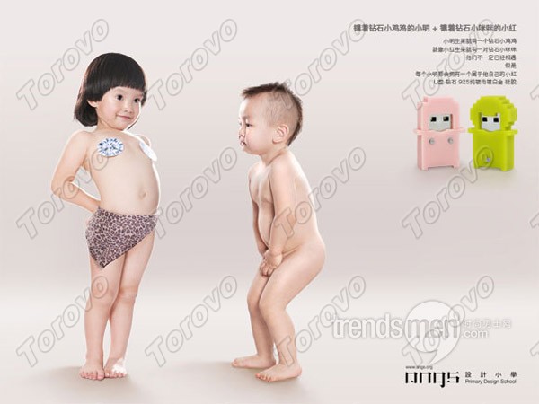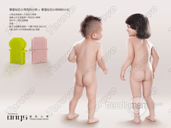 這是由國內首飾設計品牌“angs設計小學”帶來的又一力作,趣味的設計手法讓本來冷冰冰的產品富有了生趣;小明的小雞雞和小紅的小咪咪均采用的是天然鉆石,整體色彩感覺清爽。