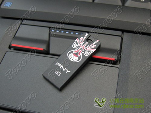 PNY臉譜盤有8GB和4GB兩款,分別采用成熟穩重的黑色及喜慶的紅色,這種配色與中國傳統文化的象征色彩一脈相承。筆者評測的這款正是其中黑色8GB的臉譜盤。