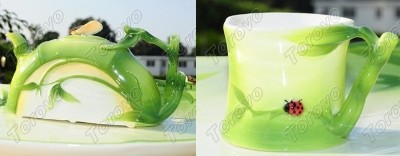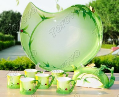 【步步高升】竹子式琺瑯瓷功夫茶具