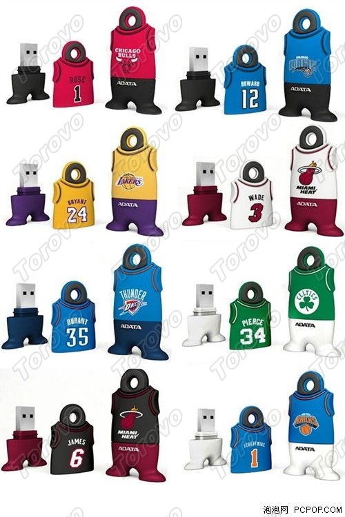 此款產(chǎn)品目前提供8個(gè)明星主題外觀,包括了科比、詹姆斯、韋德、皮爾斯、杜蘭特、斯塔德邁爾、羅斯、霍華德,每個(gè)U盤(pán)都“穿著”相應(yīng)球星球衣。
