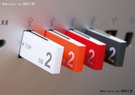 圖片中展示的曲別針U盤為2GB、4GB容量,分為白、黑、橙、紅四種顏色,不過該U盤什么時(shí)候能夠開始生產(chǎn)并進(jìn)入市場(chǎng)目前還不清楚。