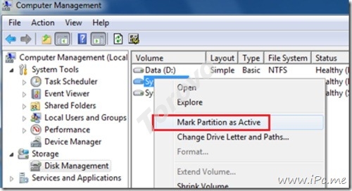 (我選擇這種方案)保證硬盤里有個(gè)分區(qū)有足夠大的空間,或者獨(dú)立分一塊5-10GB的空間出來(lái)。然后在 Windows 系統(tǒng)管理里面,磁盤管理中將這個(gè)分區(qū)設(shè)置為激活狀態(tài):