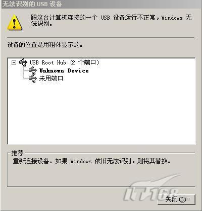 U盤插入電腦,電腦提示ldquo;無(wú)法識(shí)別的設(shè)備”故障診斷方法如下。