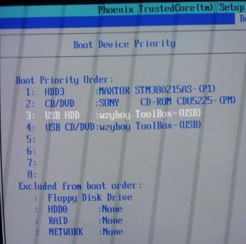 第三張圖是在BIOS里的樣子,也被識(shí)別為兩個(gè)設(shè)備,一個(gè)是USB-CDROM。一個(gè)是USB-HDD。(注:U盤(pán)的名字在量產(chǎn)的時(shí)候被我改了……)