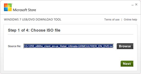 微軟提供了一個官方的制作Windows 7安裝U盤/DVD的軟件,就是上面提到的Windows 7 USB DVD Download Tool,用它可以將下載到的Windows 7的iso文件安裝燒錄到DVD里或者是寫入到U盤里,這里我們用的是后一種功能。