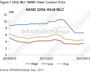 部份系統產品客戶自9月起,已開始準備4Q11新機型上市所需的庫存回補所需。9月上旬主流的MLC NAND Flash合約價大致維持平盤,雖然記憶卡及UFD通路市場的需求仍然相對平淡,但也已呈現止跌回穩的狀況。雖然3Q季底效應將近,但預期多數下游客戶的年終銷售旺季的庫存回補需求可望持續到10月中,因此,短期內NAND Flash合約價也可望出現相對穩定的格局。
