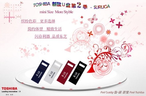 東芝 MINI系列U盤有4G/8G容量供大家選擇,4G為藍白兩色,8G則是紅黑兩色,外型小巧,精致美觀。