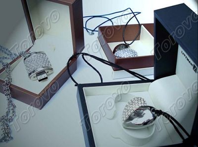 此款項鏈U盤分為銀色和金色兩種,整個造型貴氣十足,外觀非常奢華的水晶U盤一經發表就讓人眼前一亮hellip;hellip。