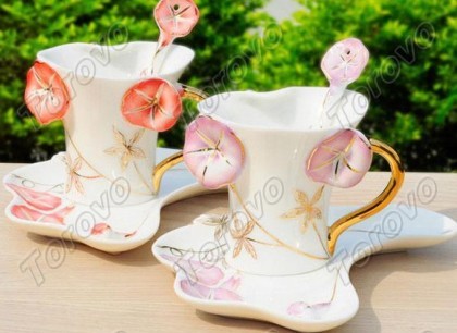 規格:2杯2碟2匙 杯口徑8.5cm 高8cm;碟長14cm;匙長13cm
